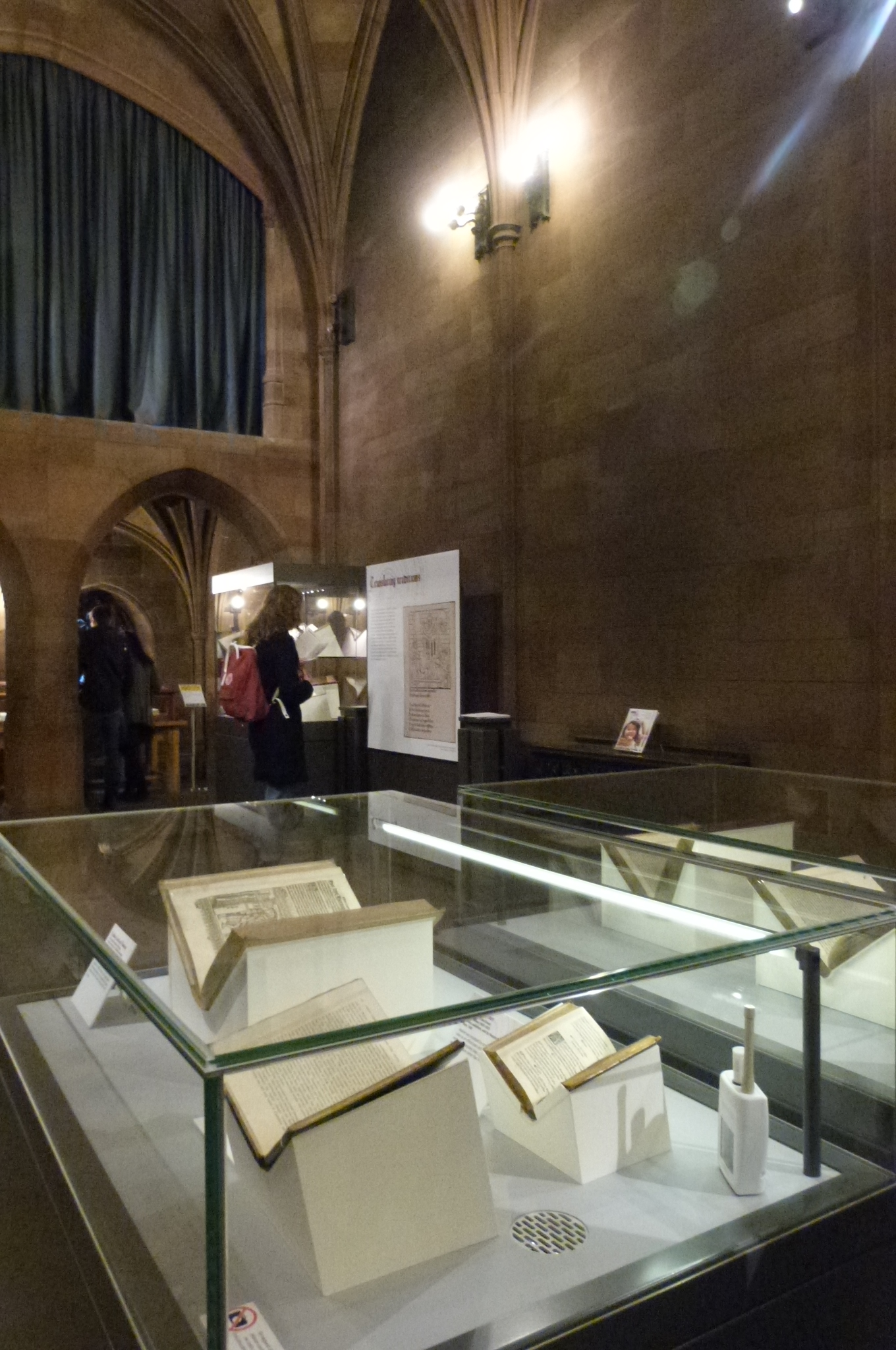 The John Rylands Library is an extraordinary neo-Gothic building to which no tourist visit to Manchester is complete without. The architectural experience is supplemented by many fine exhibitions making use of its special collections, although due to their small, studious nature, they can often be overlooked. Communities in Communication is one such exhibition taking place in its cloistral vaulted corridors. Drawing on the Rylands’ large collection of books from the late medieval Netherlands, this small show forms part of a larger AHRC-funded project to understand the interplay of literary cultures in the late medieval Low Countries.