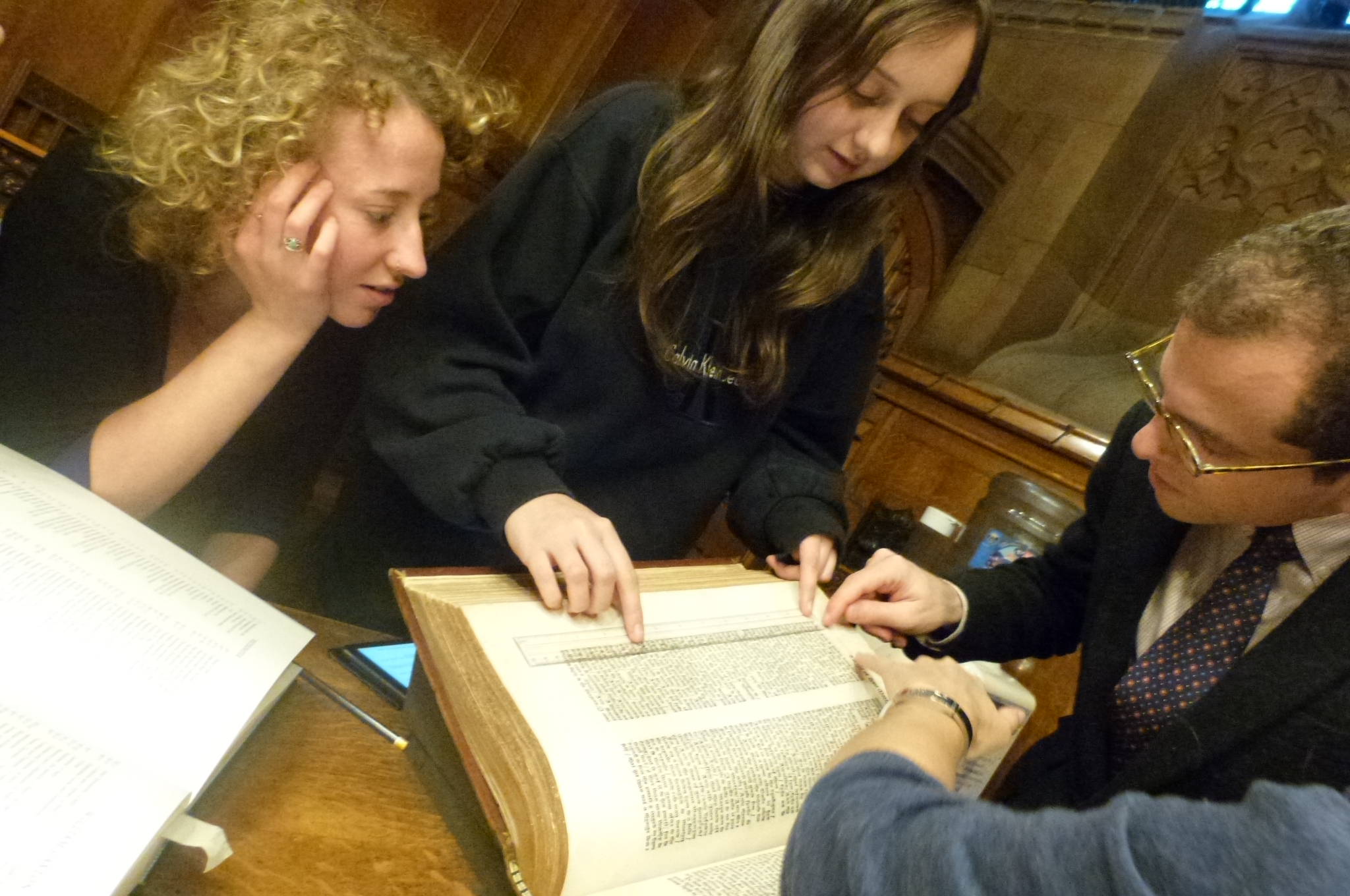 I was fortunate enough to visit the exhibition on the occasion of a study day led by the exhibition curator, Adrian Armstrong. Our group was assigned a wonderful copy of Caxton’s English translation of the Golden Legend. First we studied the book as a physical object: assessing how the paper had been folded into bifolios and bound into quires. A copy that appears mint at first belies a fascinating object history: on close inspection showed how pages had been bookmarked by a neat reader. After a short break we looked at the book in a different way: how we might consider transcribing the text for a modern critical edition. Does one insert modern punctuation and expand contractions, or go the whole way and modernise the often archaic spelling? These are no doubt issues Caxton himself faced when sitting down with English, Latin and French versions of the Legenda Aurea back in Westminster in the 1480s.