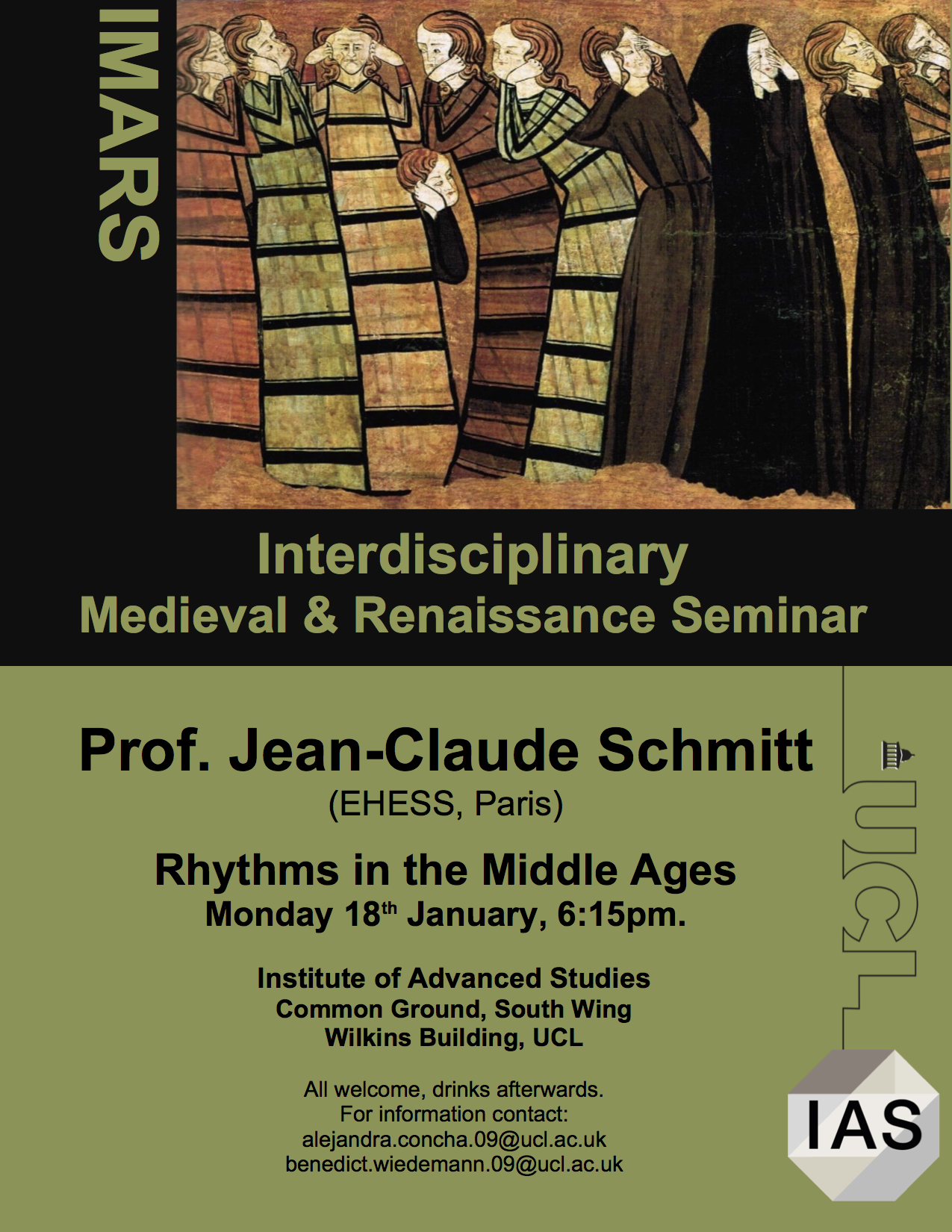 We are delighted to announce the next UCL IMARS Seminar of 2015-16. The seminar will be held on Monday, 18th January 2016 with Professor Jean-Claude Schmitt – Doyen of the modern Annales School – speaking. He will be presenting his latest book: