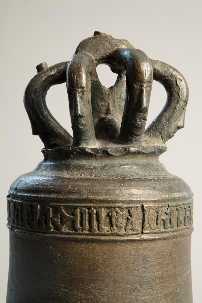 This slender bell was likely cast in a Viennese foundry at some point in the late fifteenth century. It is delicately ornamented, including the unusual addition of human faces with their striking silhouettes at the top of the bell. It is exceptionally rare to find such ornament on surviving medieval bells. You can hear more about this fascinating object in Sam Fogg’s video.