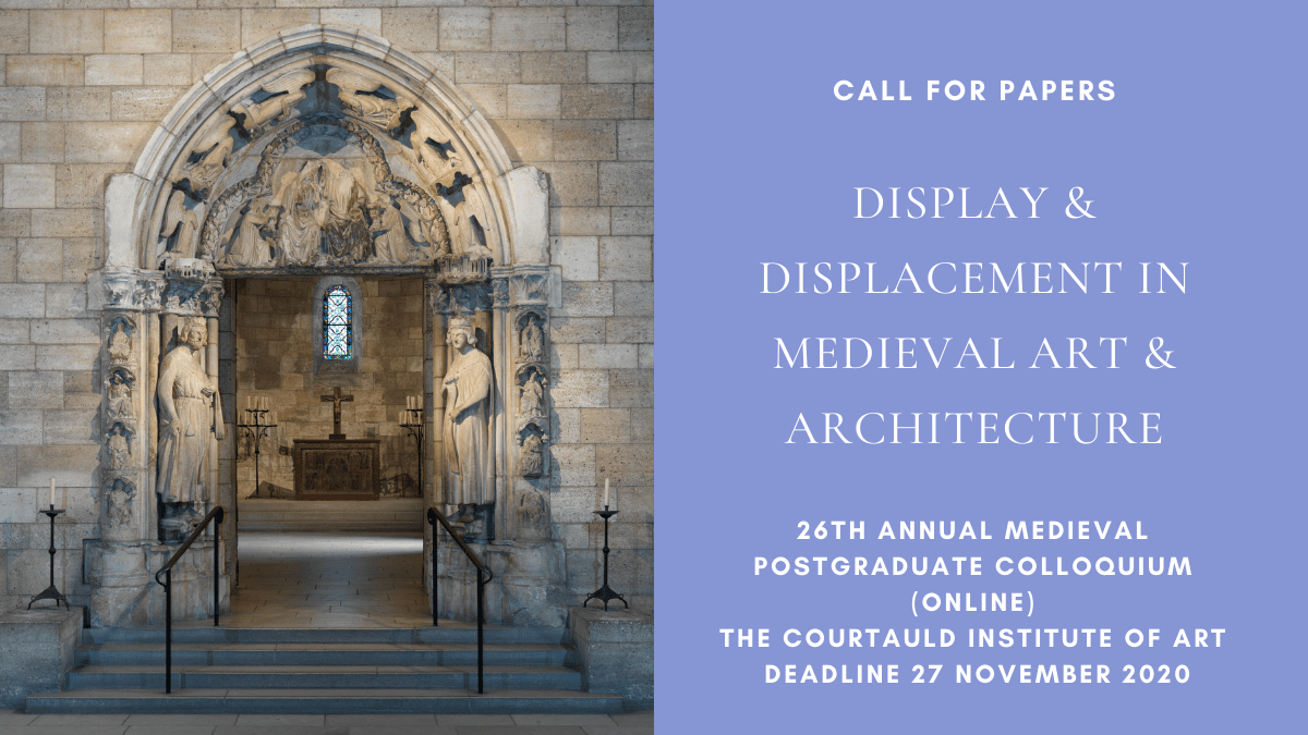 Surviving sources – whether written or visual – affirm that the reciprocal relationships between objects and their sites were integral to medieval viewers’ experience of art and architecture. At a time when access to artworks and cultural sites has been largely disrupted by the current pandemic, addressing the question of how medieval art was uprooted and its display reconfigured is especially pertinent. The Courtauld Institute of Art’s 26th Annual Medieval Postgraduate Colloquium invites speakers from various academic fields (including, but not limited to, art history, archeology, material culture and conservation studies) to consider various forms of displacement and their visual and experiential implications for medieval art and architecture. Speakers are encouraged to address the following and related questions, understood in the broadest geographical and chronological terms: