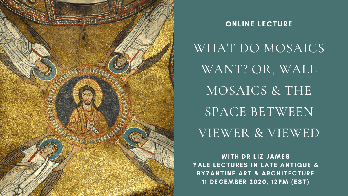Join Yale for their up-coming Lectures in Late Antique and Byzantine Art and Architecture series. In this online lecture, Dr Liz James (University of Sussex) presents: ”What do Mosaics Want? Or, Wall Mosaics and the Space between Viewer and Viewed’.
