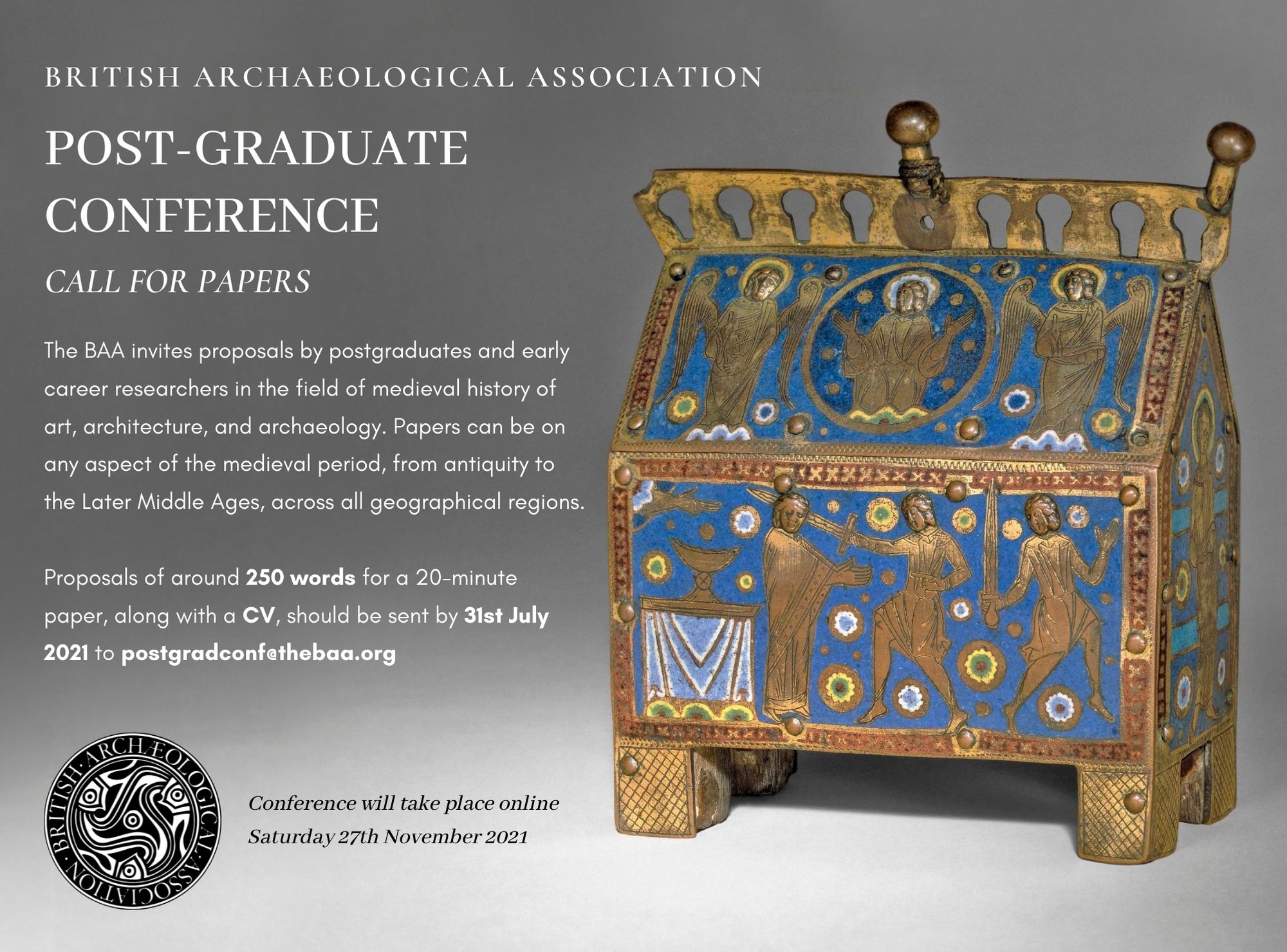 Proposals of around 250 words for a 20-minute paper, along with a CV, should be sent by 31st July 2021 to postgradconf@thebaa.org