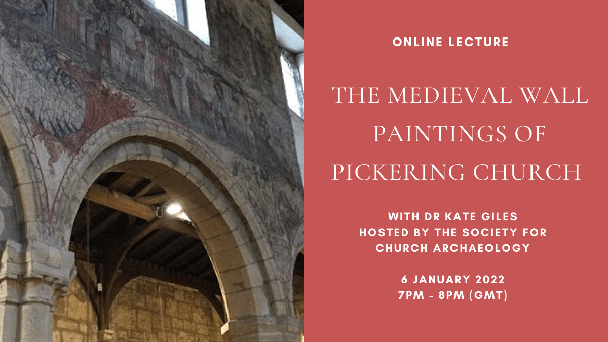 The Society for Church Archaeology is delighted to welcome Dr Kate Giles, who will deliver an online lecture ‘The medieval wall paintings of Pickering church (North Yorkshire): discovery, restoration and meaning’.