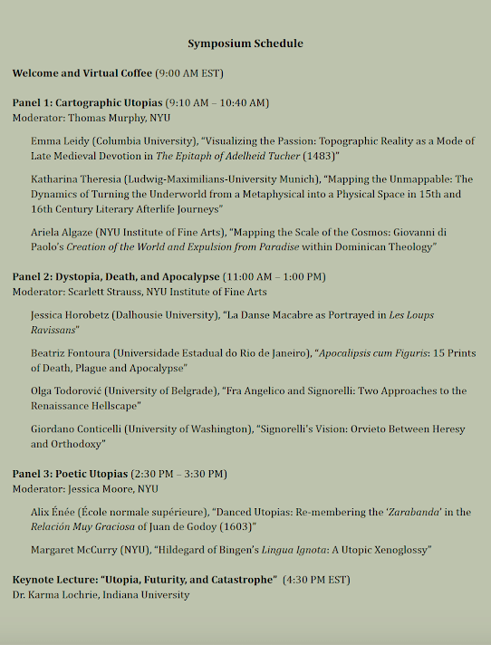 Registration is now open for NYU MARGIN’s Graduate Symposium, ‘Utopia, which will be held virtually via zoom. Below is the complete programme: