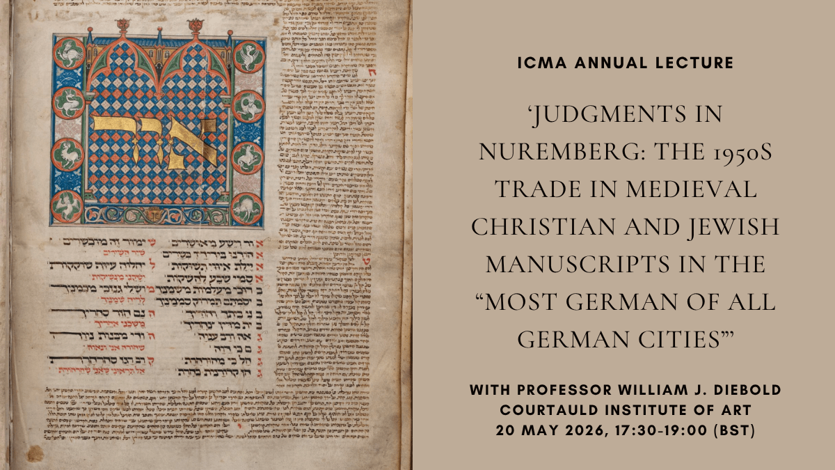 Organised by Dr Jessica Barker, Senior Lecturer in Medieval Art History at the Courtauld. This event is kindly supported by the International Center of Medieval Art (ICMA), and the drinks reception sponsored by Sam Fogg.