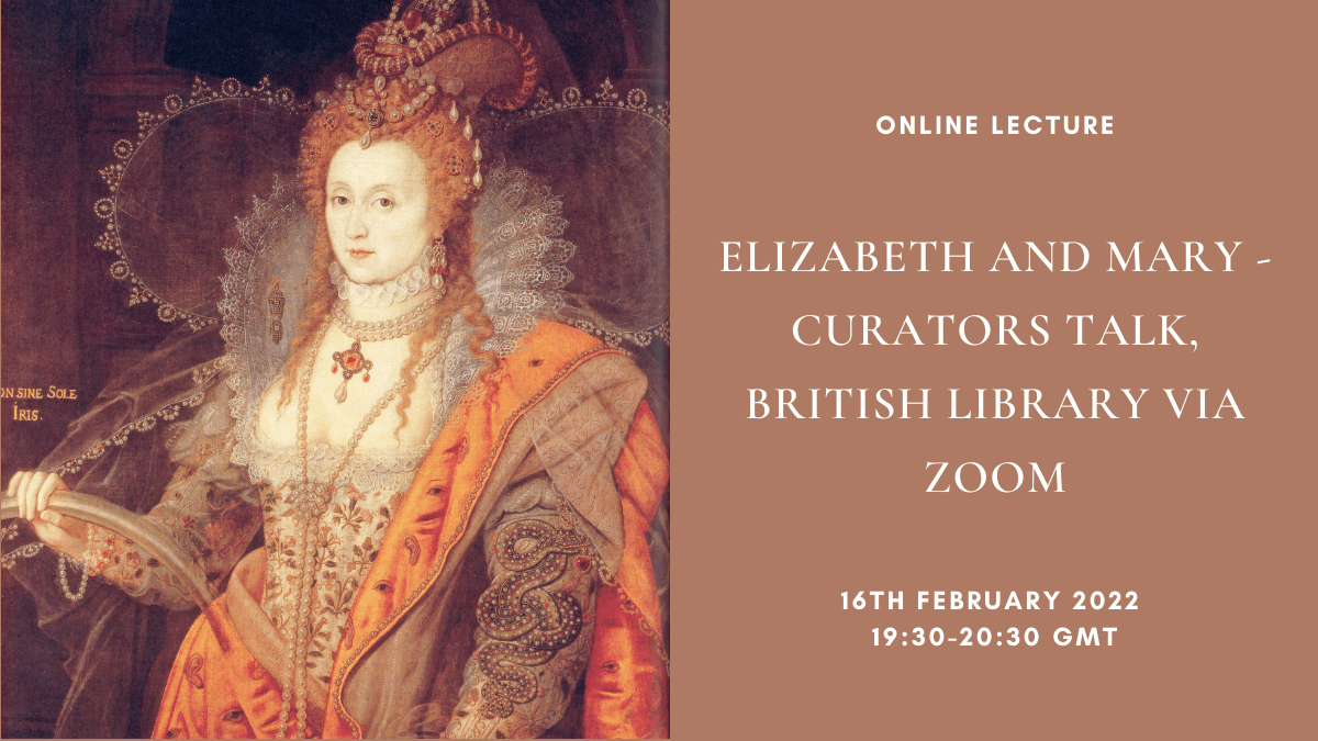 Online Lecture: Elizabeth and Mary – Curators Talk, British Library via Zoom, 16th February 2022, 19:30-20:30 GMT