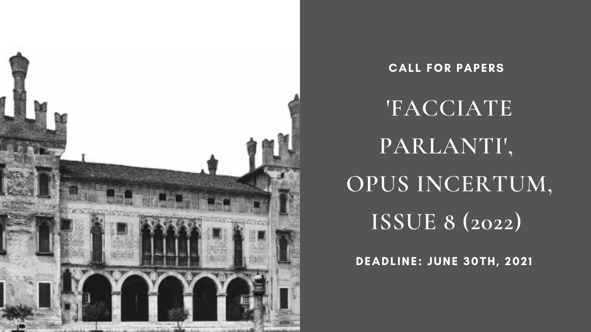 Call for Papers: ‘Facciate Parlanti’, Opus Incertum, Issue 8 (2022), Deadline: June 30th, 2021