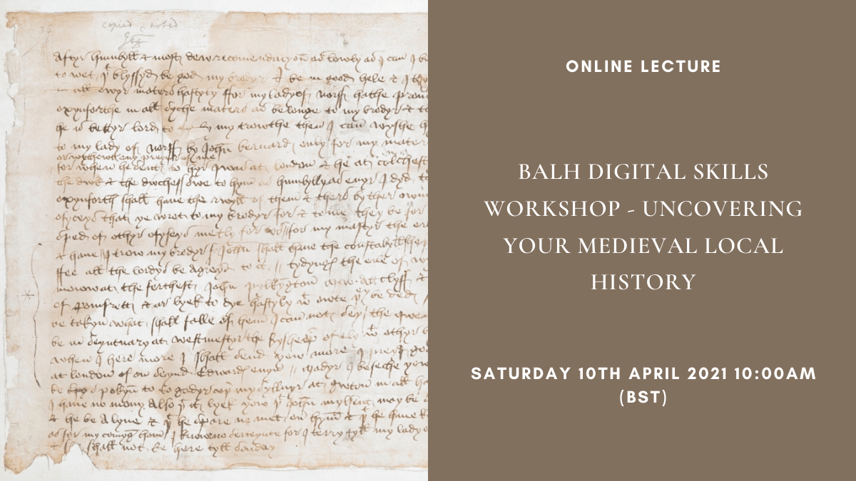 Online Lecture: BALH Digital Skills Workshop – Uncovering your Medieval Local History, Saturday 10th April 2021 10:00am (BST)