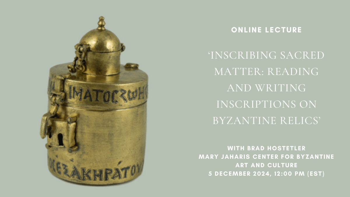 Online Lecture: ‘Inscribing Sacred Matter: Reading and Writing Inscriptions on Byzantine Relics’, with Brad Hostetler, 5 December 2024, 12:00 PM (EST)
