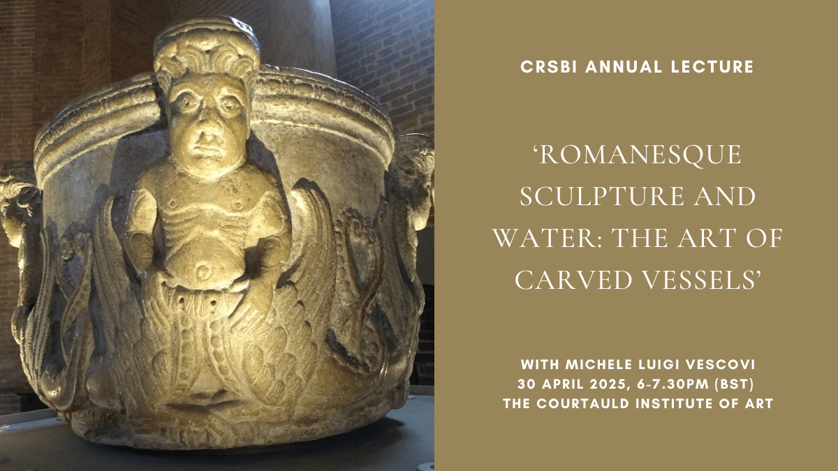 Join the CRSBI for their Annual Lecture at the Courtauld Institute of Art with Dr Michele Luigi Vescovi who will be speaking about ‘Romanesque Sculpture and Water: the Art of Carved Vessels’.