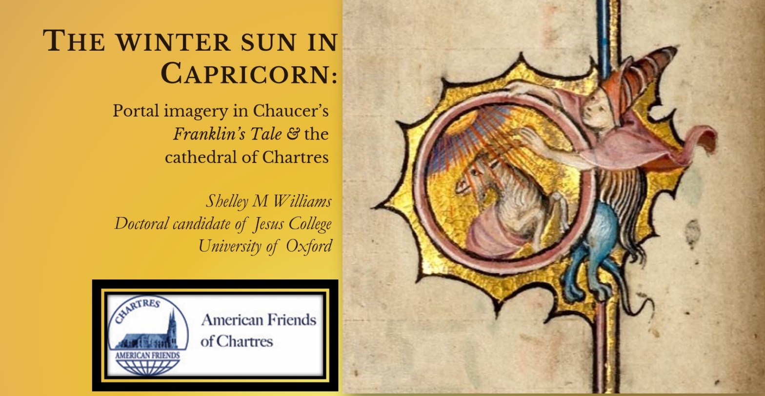 Online lecture: ‘The Winter Sun in Capricorn: Portal Imagery in Chaucer & Chartres Cathedral’ with Shelley Williams, American Friends of Chartres, 25 October 2024 (19.30-21.00pm EDT)