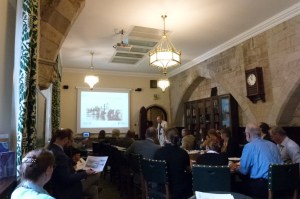 The final session brought us to how the established concept of a bridge worked in larger societal concepts: Jacopo Turchetto took us to medieval Anatolia, demonstrating how magnificent Ottoman bridges represented much older meeting places of travelling caravans. Roberta Magnusson and David Harrison both gave rich lectures about the bridge in the frameworks of English urban infrastructure and society that proved vital for enlightened conversation on the group’s trip out the Nene and Great Ouse Valleys the next day.