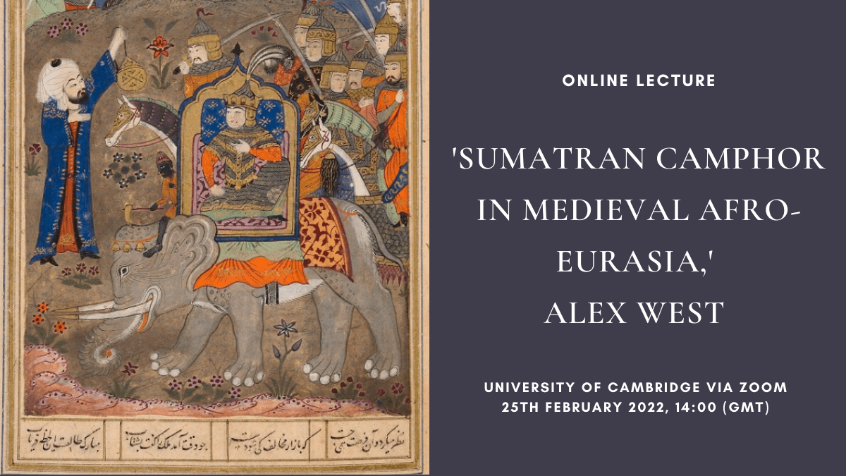 Online Lecture: ‘Sumatran Camphor in Medieval Afro-Eurasia,’ Alex West, Silk Roads Programme at King’s College, University of Cambridge, Zoom, 25th February 2022, 14:00 (GMT)