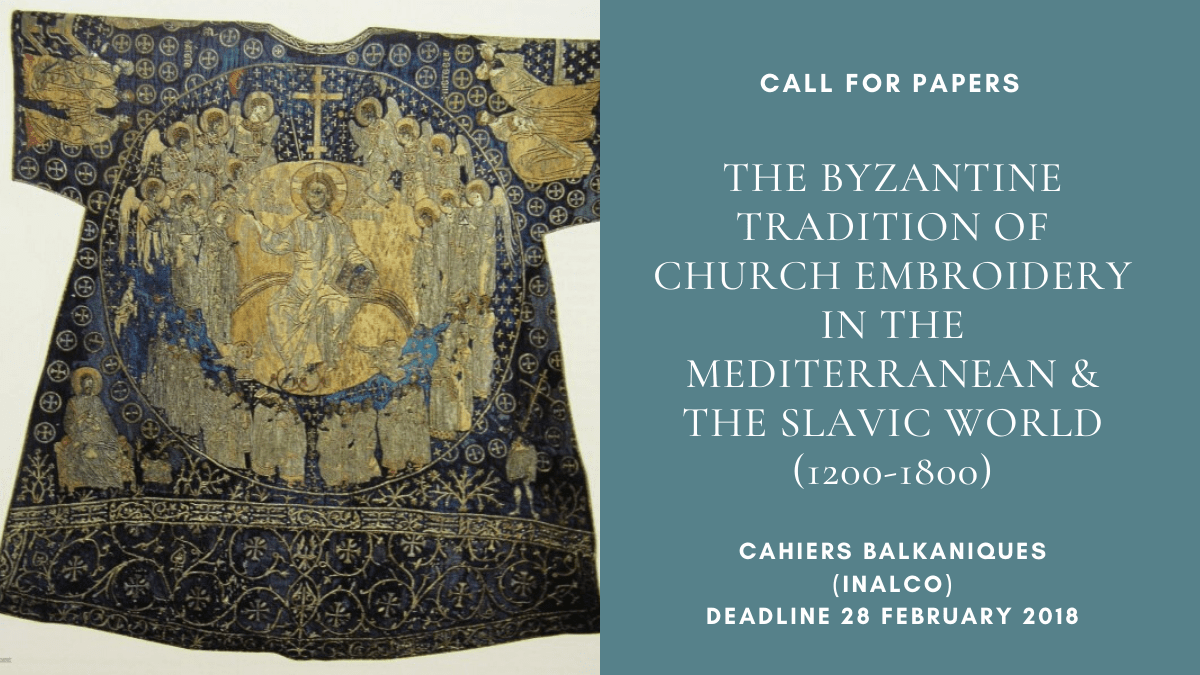 CFP: The Byzantine tradition of Church embroidery in the Mediterranean and the Slavic World (1200-1800), thematic issue of Cahiers Balkaniques (INALCO), deadline 28 February 2018
