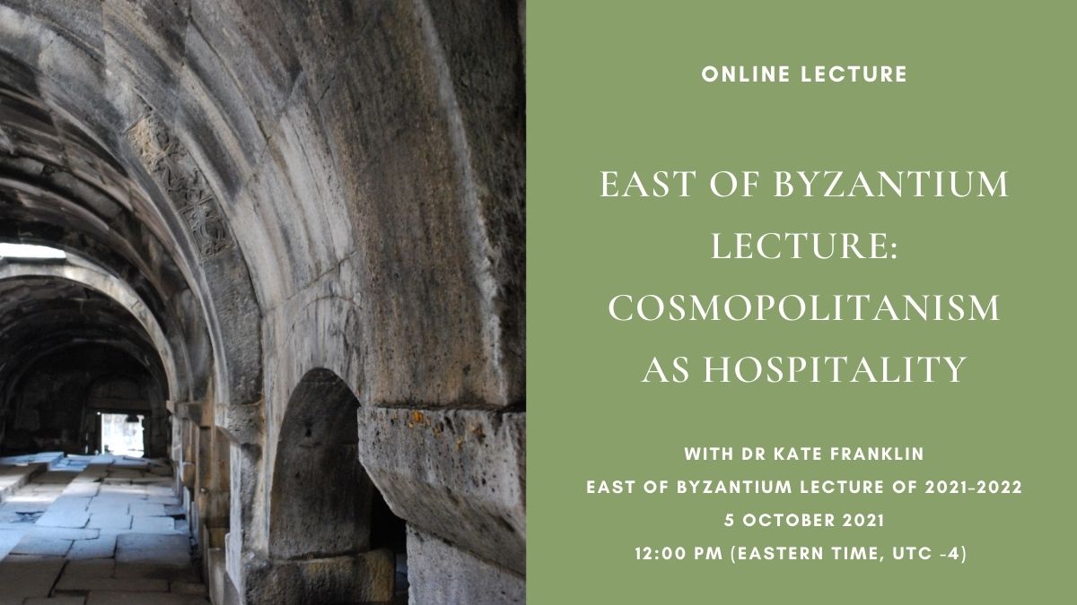 Online Lecture: ‘East of Byzantium Lecture: Cosmopolitanism as Hospitality’ with Dr Kate Franklin, East of Byzantium lecture of 2021–2022, 5 October 2021, 12:00 pm (ET)