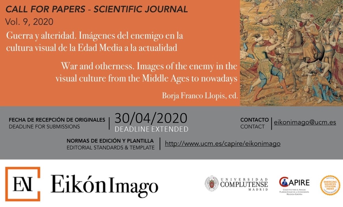 Researchers at the Complutense University of Madrid are looking for articles for their journal. Edited by the CAPIRE Research Team, Eikón / Imago Scientific Journal is an annual academic publication whose research interest focuses on iconography and visual culture, from a thematic scope that encompasses the forms and meanings of the images of any era,Continue reading “Call for Submissions: Eikón / Imago, deadline 30 April 2020”