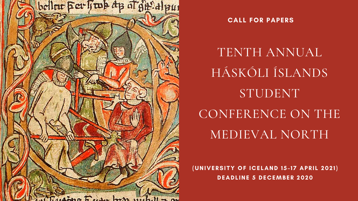 We invite submissions to our 10th annual Háskóli Íslands Student Conference on the Medieval North, which will take place at the University of Iceland April 15–17, 2021. Featured are keynote speakers Dr. Luke John Murphy and Dr. Beeke Stegmann.