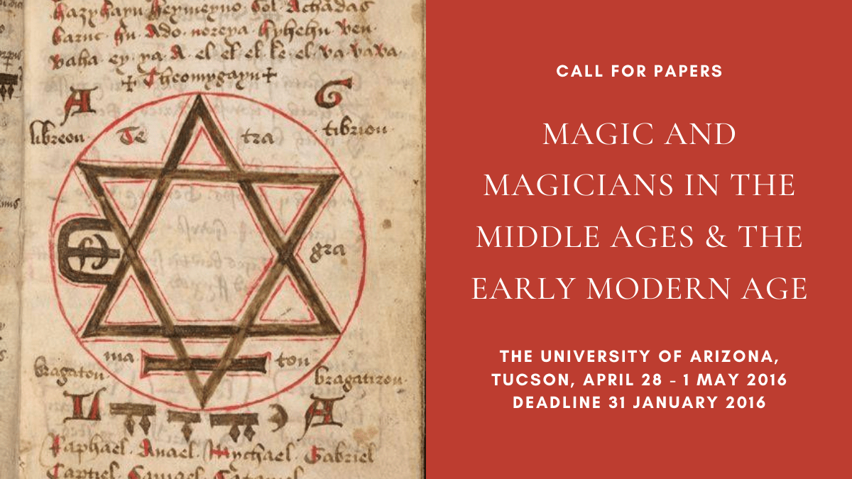 CFP: Magic and Magicians in the Middle Ages and the Early Modern Age (The University of Arizona, Tucson, April 28 – 1 May 2016), deadline 31 January 2016