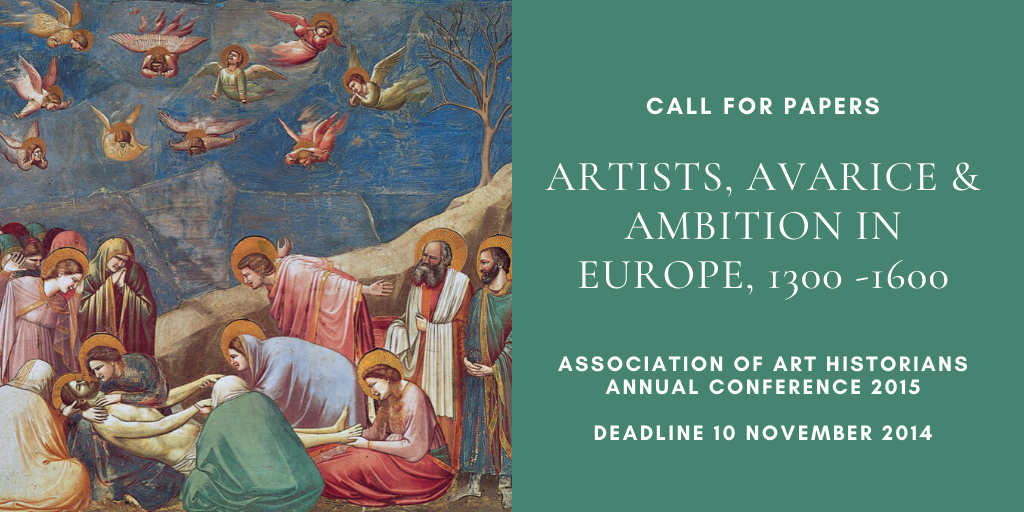 This is a call for presenters in a panel at the Association of Art Historians annual conference, which is taking place at the University of East Anglia, Norwich 9th – 11th April 2015. Artists, Avarice and Ambition in Europe, 1300 -1600 Co-convenors: Jill Harrison, Open Universityjill.harrison@open.ac.uk Vicky Ley, Open Universityv.v.ley@open.ac.uk In Trecento Italy Giotto diContinue reading “CFP: Artists, Avarice and Ambition in Europe, 1300 -1600 (AAH Annual Conference 2015), deadline 10 November 2014”