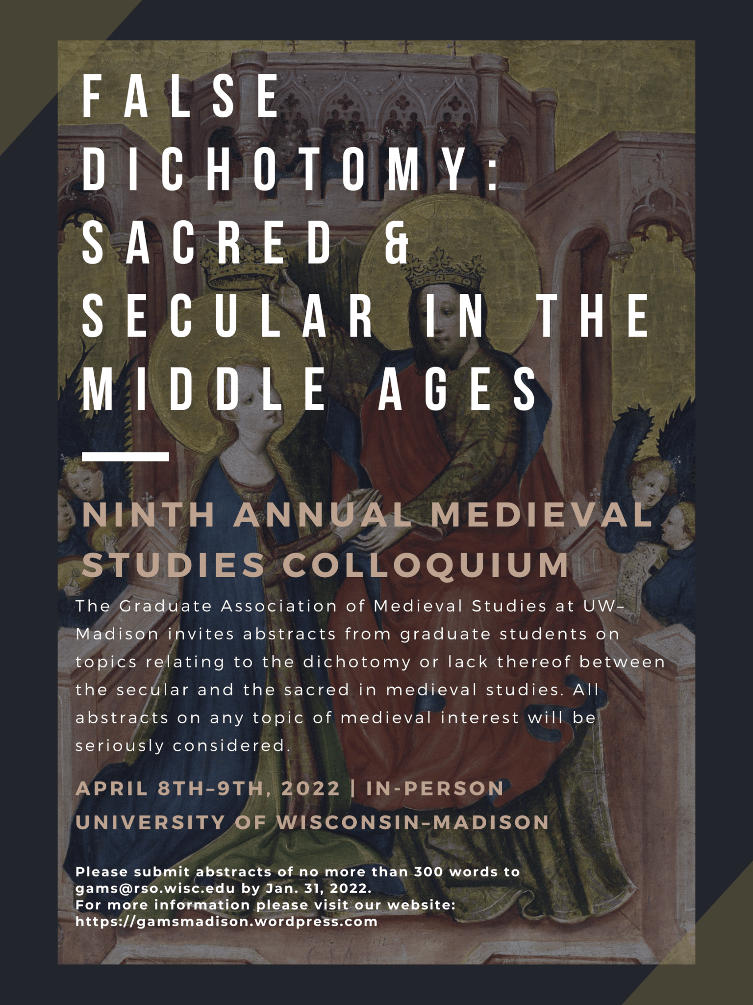 Call For Papers:“False Dichotomy: Sacred & Secular in the Middle Ages”,9th Annual Medieval Studies Colloquium at UW–Madison, deadline: 31 December, 2021