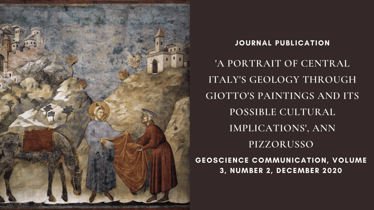 Central Italy has some of the most complex geology in the world. In the midst of this inscrutable territory, two people emerged – St. Francis and Giotto – and they would ultimately change the history of ecology, religion and art by extolling the landscapes and geology of this region. From antiquity to the Middle Ages,Continue reading “New Journal Article: ‘A portrait of central Italy’s geology through Giotto’s paintings and its possible cultural implications’, Ann Pizzorusso, Geoscience Communication, Volume 3, Number 2, December 2020”