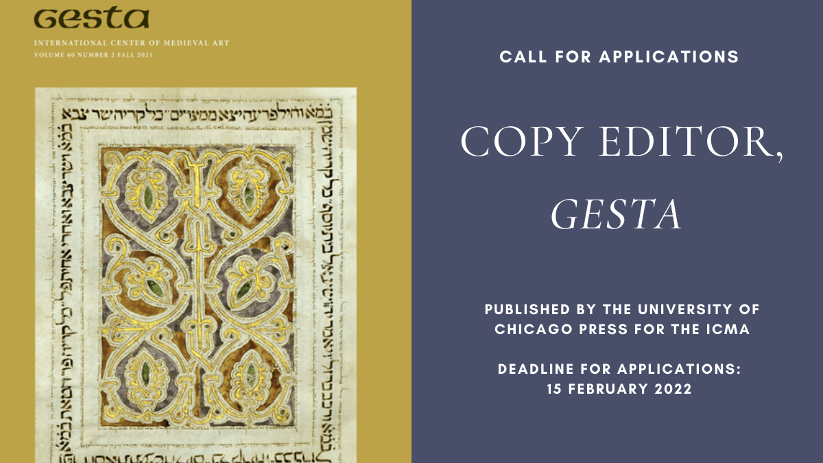 Job opportunity: Copy editor for Gesta, deadline 15 February 2022