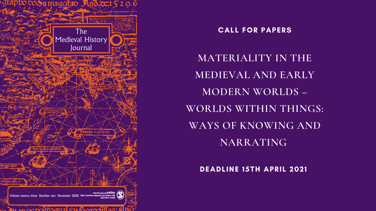 CFP: Materiality in the Medieval and Early Modern Worlds – Worlds Within Things: Ways of Knowing and Narrating (Special Issue of The Medieval History Journal), Deadline: 15th April 2021