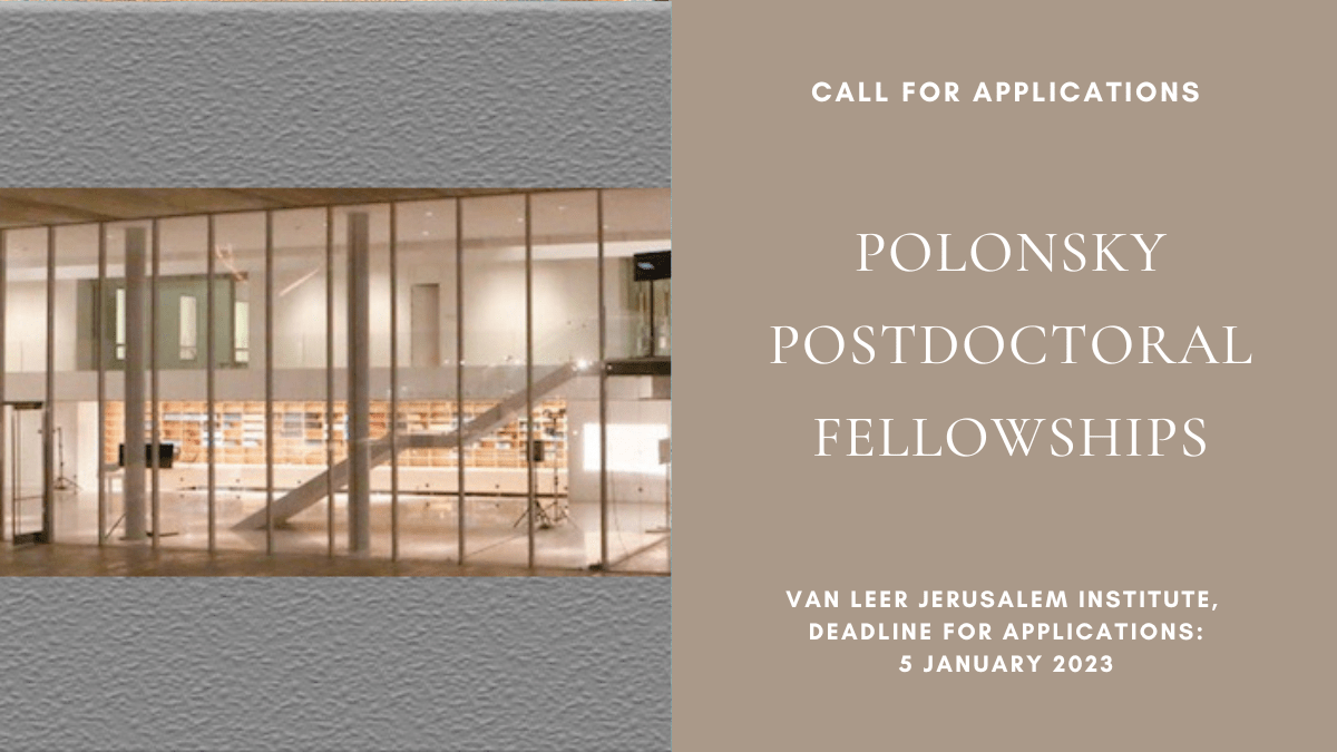 Funding: Polonsky Postdoctoral Fellowships, Van Leer Jerusalem Institute, Deadline for applications 5 January 2023