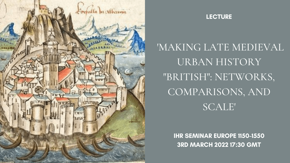 Lecture: IHR Seminar Europe 1150-1550: ‘Making Late Medieval Urban History “British”: Networks, Comparisons, and Scale, 3rd March 2022 17:30 GMT